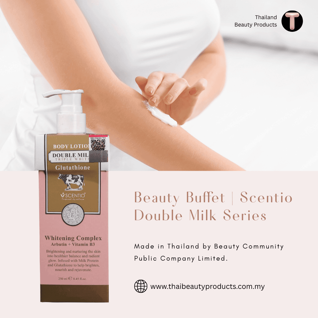 The Beauty Buffet Double Milk Triple White Body Lotion is a deeply nourishing, brightening, and skin-softening body care essential powered by Milk Protein, Glutathione, Arbutin, and Vitamin B3. Specially formulated to improve dullness, dryness, uneven skin tone, and rough texture, this lotion provides the perfect daily whitening and moisturizing routine for all skin types.